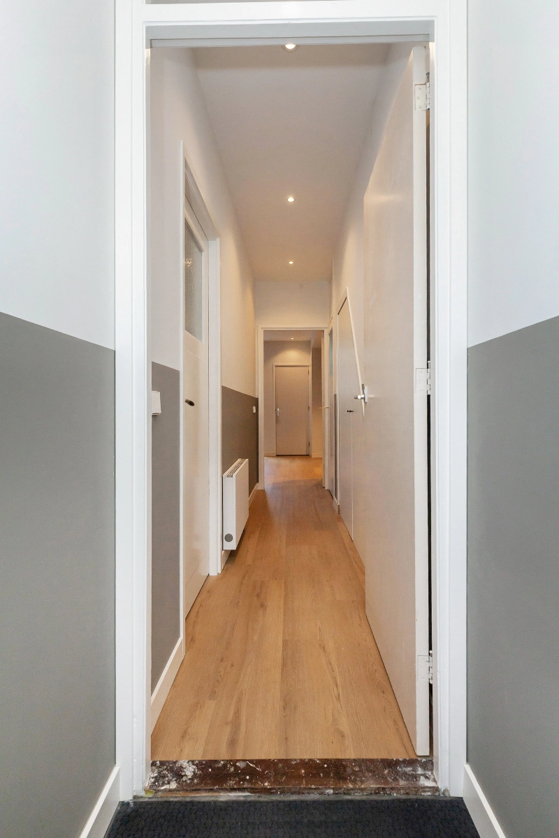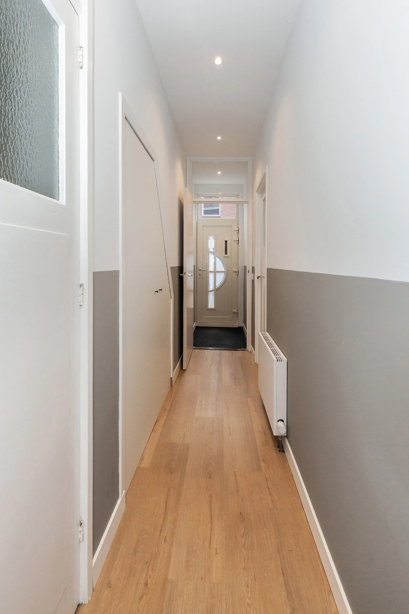 Na het openen van de voordeur kom je in de vestibule welke doorloopt in de hal.