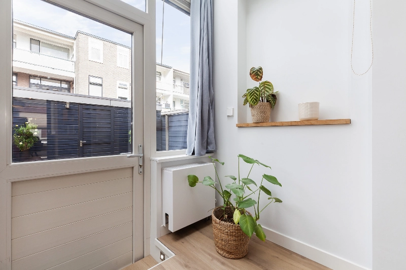 Naast de keuken in een inbouwkast met opstelling van de CV-ketel (2022).