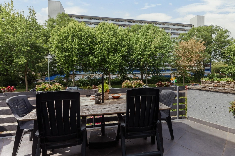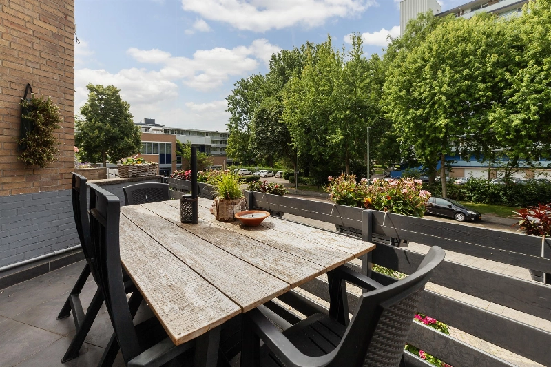 Op de 1e verdieping bevindt zich een ruime woonkamer met moderne open keuken en een heerlijk terras op het zuidwesten. Op de begane grond bevinden zich twee slaapkamers en op de 2e verdieping vind je nog eens twee ruime kamers.