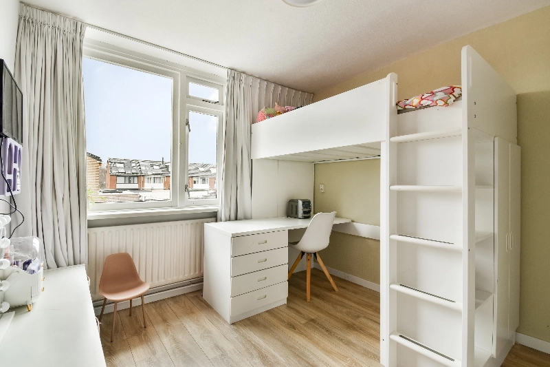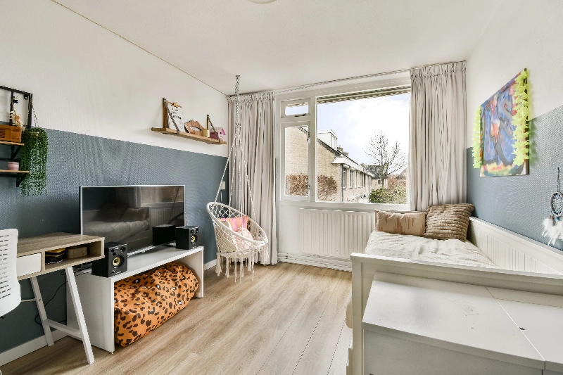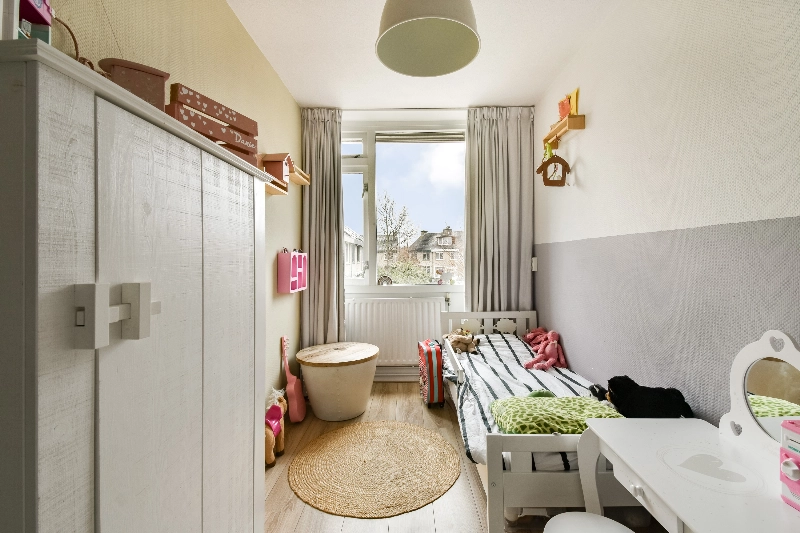 Slaapkamer I (ca. 3.76 x 1.94 m) is momenteel in gebruik als kinderkamer en ligt aan de achterzijde van de woning.