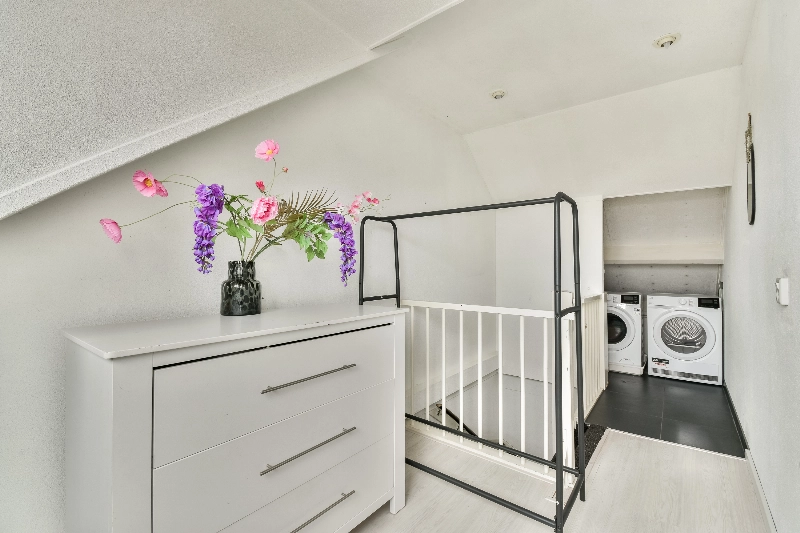 De ruime overloop biedt plaats aan de opstelling van de c.v.-combiketel en de aansluitingen voor wasmachine en droger.