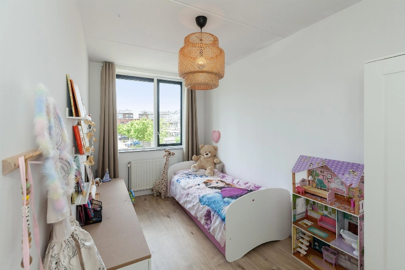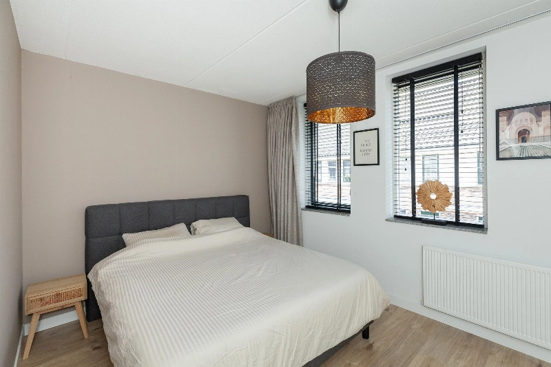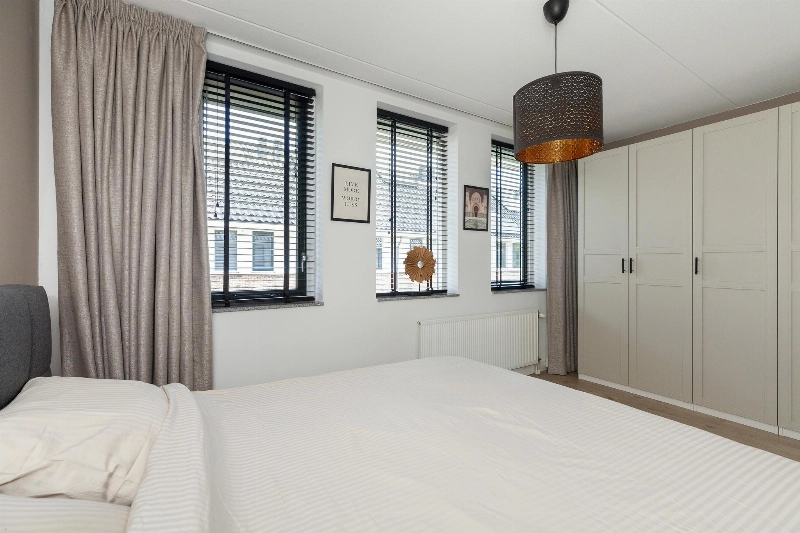Slaapkamer I is gelegen aan de voorzijde van de woning en heeft vrij zicht op het autovrije pad. Dit is een ruime ouderslaapkamer.