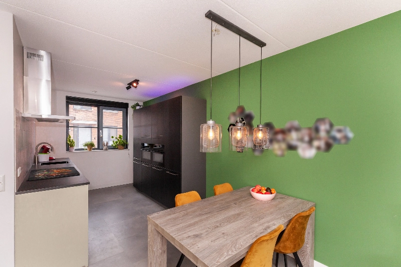 De woning heeft een schitterende dubbele keukenopstelling in olijfgroen en zwart met alle inbouwapparatuur en de begane grond is voorzien van een mooie PVC plavuizen met vloerverwarming en glasvliesbehang. De 1e verdieping is geheel voorzien van een mooie PVC vloer met ook hier weer vloerverwarming en de wanden voorzien van glasvliesbehang. De trap is tevens voorzien van PVC met verlichting middels traprenovatie.