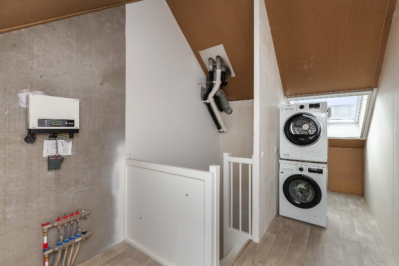 De voorzolder is voorzien van een aansluiting van de wasmachine en droger. Tevens vindt u hier de omvormer van de zonnepanelen. Het dakraam aan de voor -en achterzijde zorgt voor een goede daglichttoetreding.