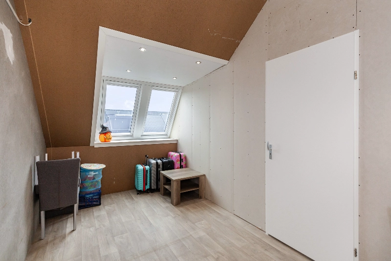 En dan is er nog een prachtige zolderruimte die naar eigen smaak is af te werken. De indeling is al gemaakt, de voorzolder is voorzien van een dakraam voor- en achter en de zolderkamer is voorzien van een dubbel modulair dakraam met zonwering. Deze gehele verdieping is voorzien van een vinyl houtlook vloer.