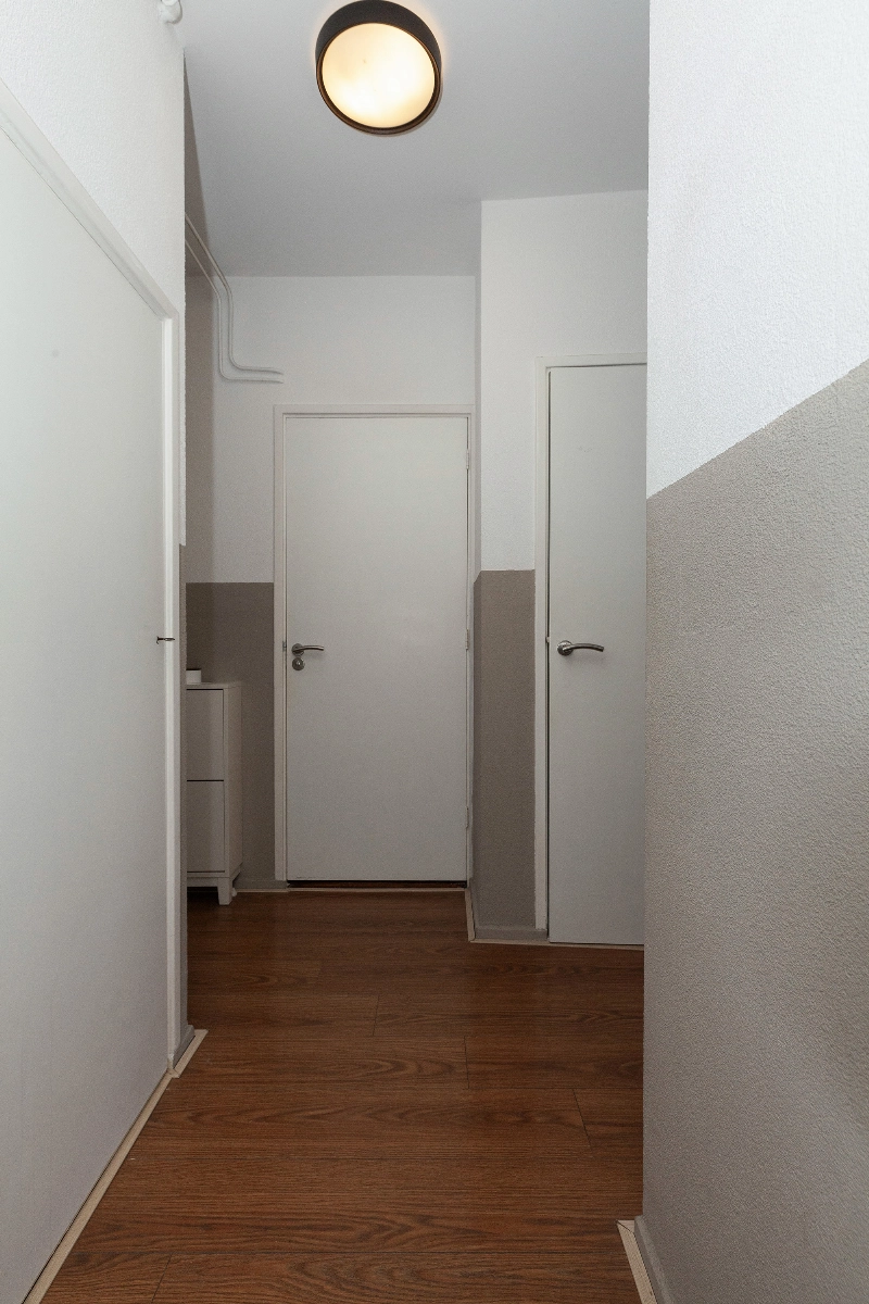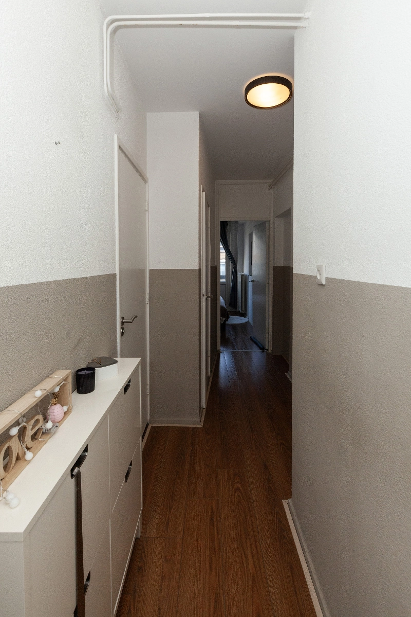 Afgesloten entree met bellentableau en brievenbussen. Via de centrale hal bereik je met de intercombeveiligde deur de trapopgang naar de tweede verdieping. Aan de galerij ligt de entree van het appartement. Je komt binnen in een tochtportaal waarna de centrale hal toegang geeft tot alle vertrekken.
