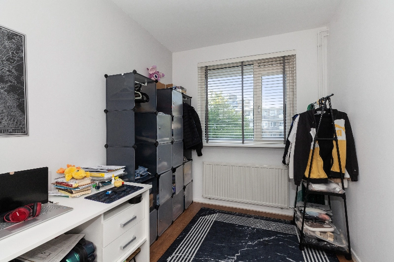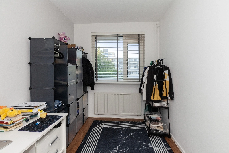 Slaapkamer I, ligt direct naast de woonkamer en is thans in gebruik als werkkamer.