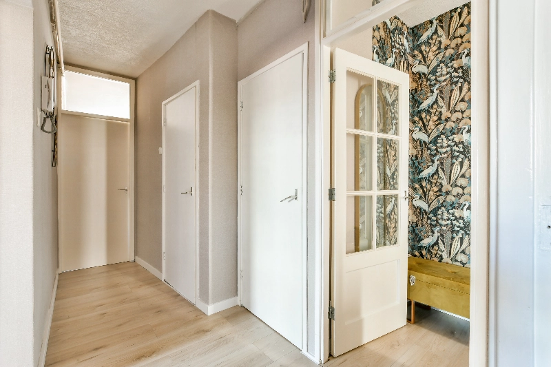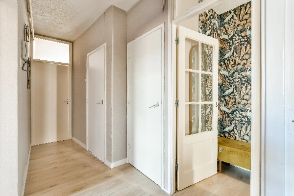 De afgesloten entreehal is aan de buitenzijde voorzien van een bellentableau met intercom en brievenbussen. Vanuit de hal kun je met de trap naar de berging in de kelder of naar de woning op de 2e verdieping.