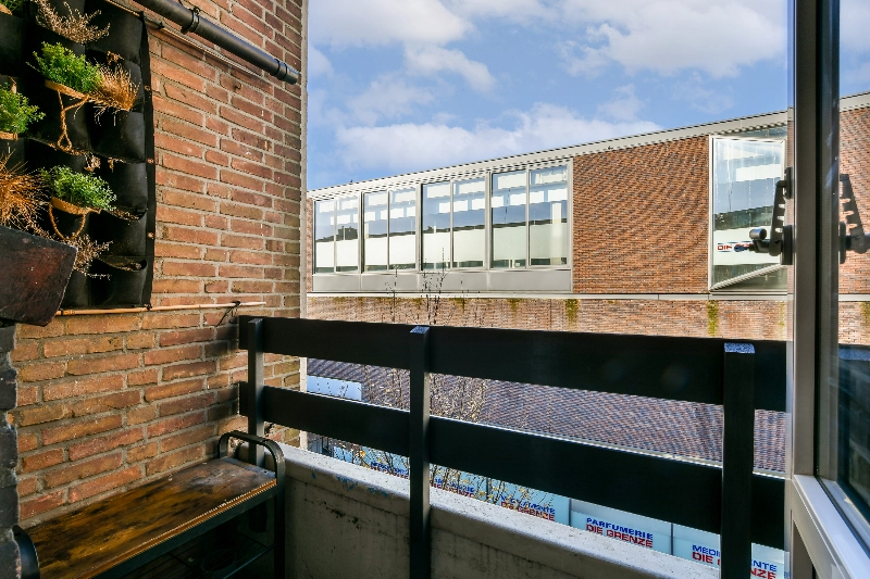 Via de keuken bereik je een klein zijbalkon.
