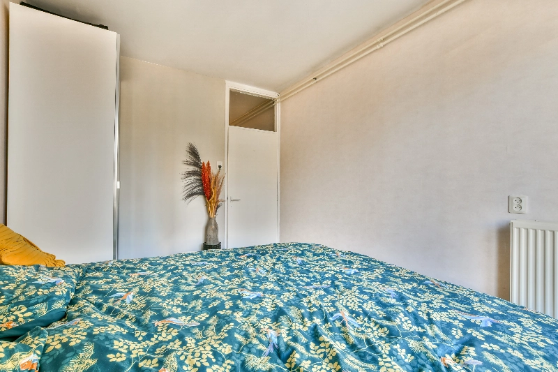 Aan de voorzijde ligt de slaapkamer. Deze is ruim en heeft een deur naar het balkon aan de voorzijde.