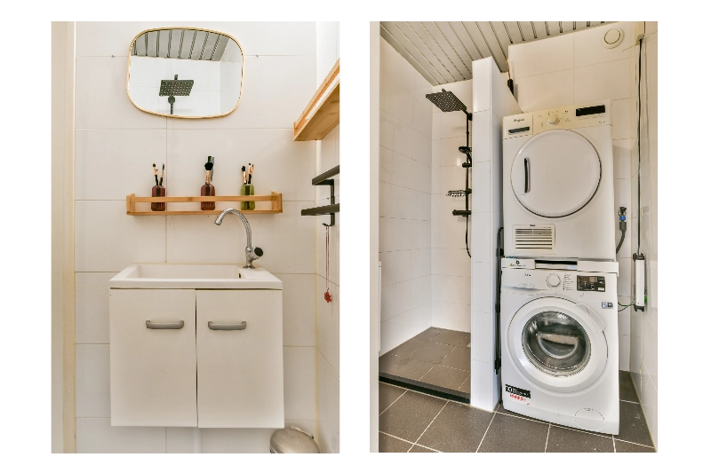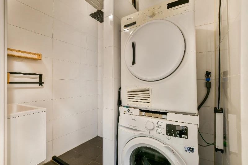 Voordeur, ruime entree hal met meterkast en vaste kast. Doorgang naar de hal alwaar de keurige toiletruimte en de modern betegelde badkamer is voorzien van witte wand- en grijze vloertegels, wastafel, doucheopstelling en opstelplaats voor de wasmachine en droger.