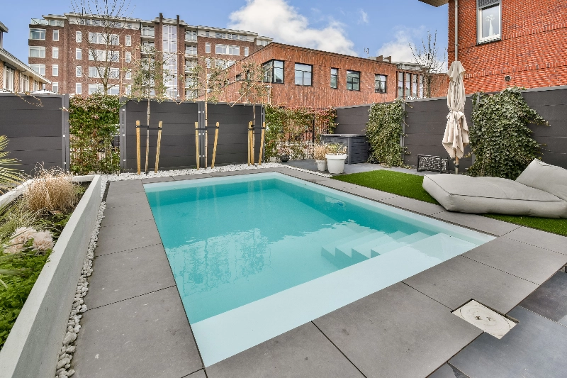 Er is voor de verwarming van het zwembad een aparte warmtepomp geplaatst en het zoutwaterzwembad is onderhoudsarm en kindveilig afgedekt met een solar-lamellendek.