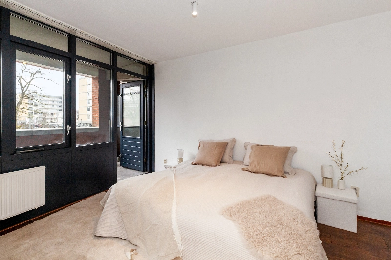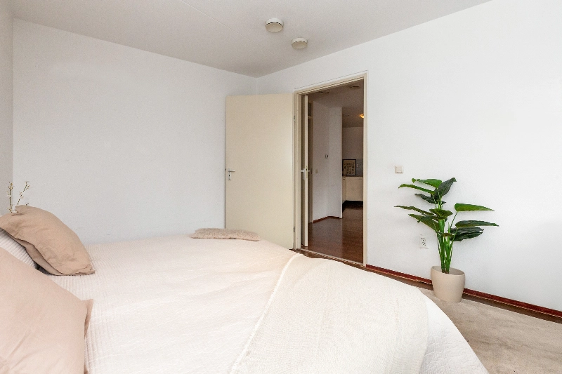 Grenzend aan de hal bevinden zich de ruime slaapkamer.