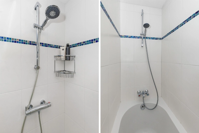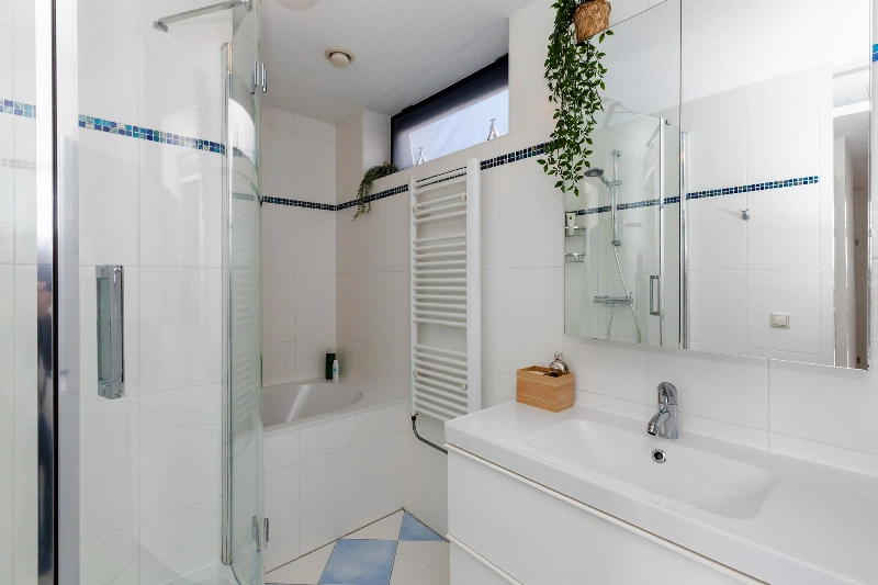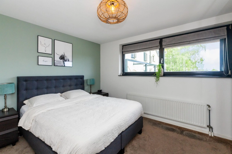 Er zijn drie ruime slaapkamers en een keurige badkamer. De badkamer heeft dezelfde betegeling als het toilet en beschikt over een ligbad, een douchehoek, een wastafelmeubel, een moderne radiator en de opstelplaats voor de wasmachine en droger.