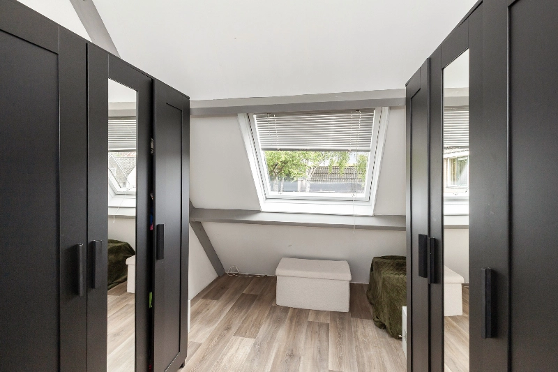 Slaapkamer II en III liggen aan de achterzijde van de woning, hebben beide een dakraam en een afmeting van ca. 2.90 x 2.55m.