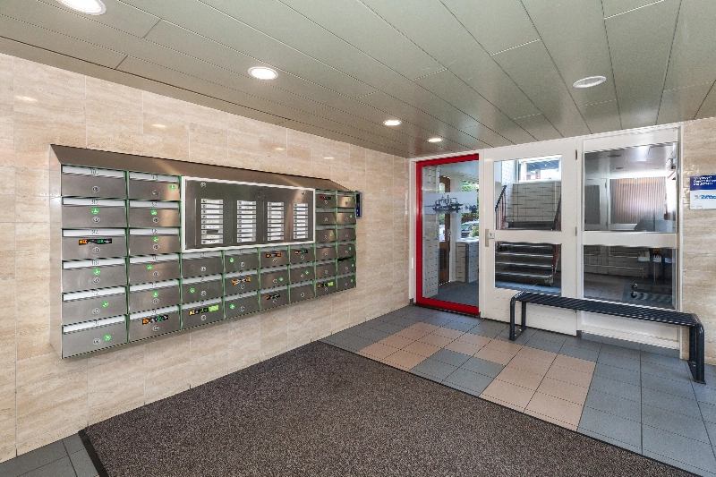 Het appartementencomplex verwelkomt u met een keurig verzorgde, afgesloten ontvangsthal. Hier vindt u een modern bellentableau met videofoon en brievenbussen. Met de lift of trap bereikt u eenvoudig de verdiepingen.