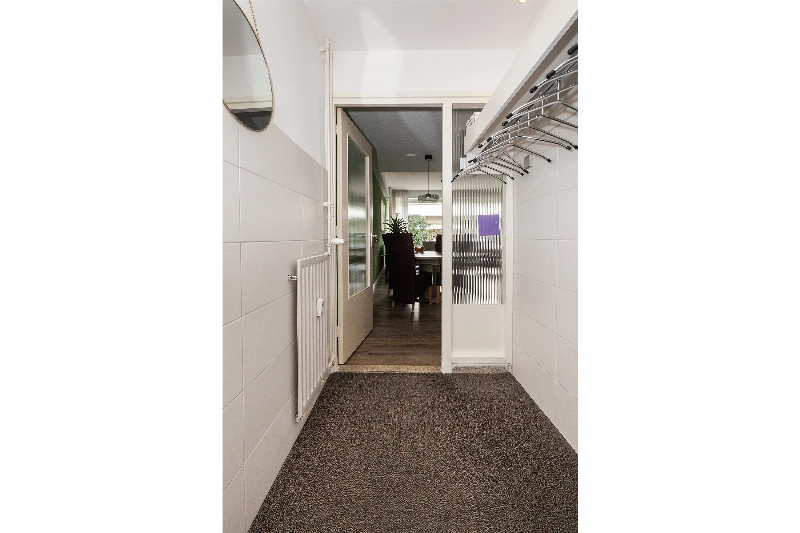 Bij binnenkomst treft u een ruime, betegelde hal waar zich de garderobe nis en meterkast bevindt, uitgerust met 8 groepen, aardlekschakelaar, hoofdschakelaar en PV-groep.