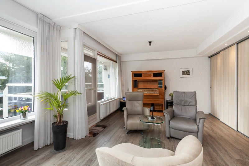 De moderne keuken is voorzien van stijlvolle inbouwapparatuur, er is een luxe badkamer en twee ruime slaapkamers. Dankzij de grote kunststof kozijnen met HR ++-glas baadt de woonkamer in natuurlijk licht. De prachtige houtlook laminaatvloer geeft het geheel een warme uitstraling, terwijl het uitzicht u telkens weer verrast. Het balkon ligt ideaal op het zuiden- perfect om van 's ochtends tot 's avonds van de zon te genieten.