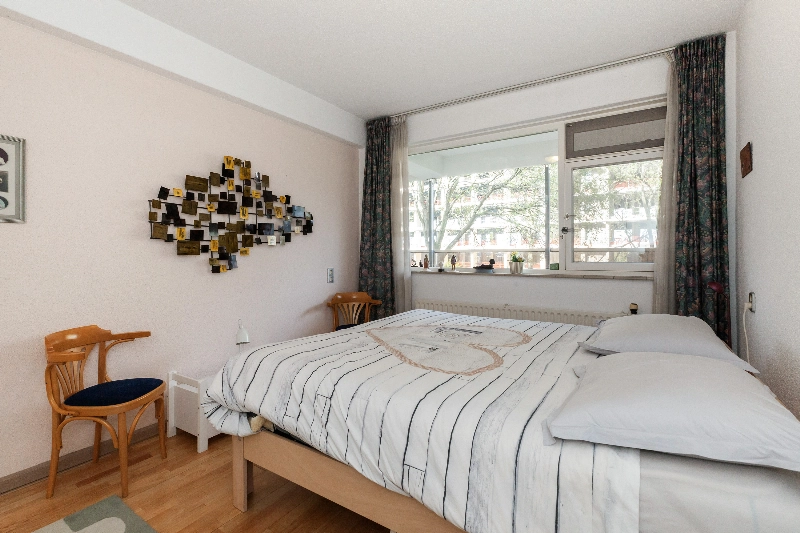 De hoofdslaapkamer (4,26 x 3,25 m) is royaal van formaat en beschikt over een grote vaste schuifwandkast. De tweede slaapkamer (2,91 x 3,27 m) is eveneens ruim en voorzien van een vaste kast met aansluitingen voor wasmachine en droger. Beide slaapkamers zijn afgewerkt met een parketvloer.