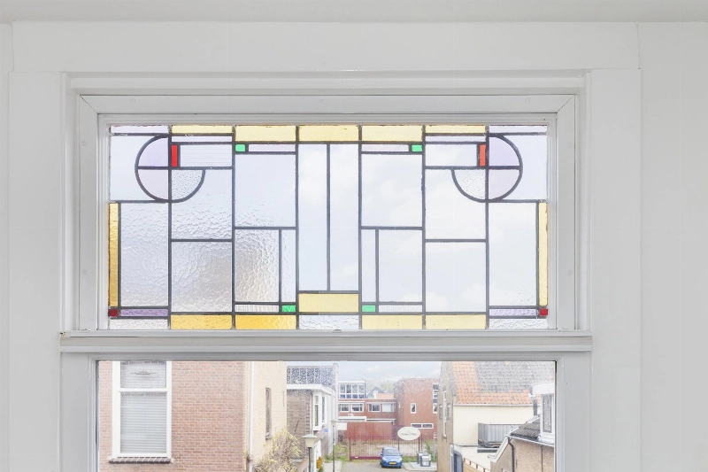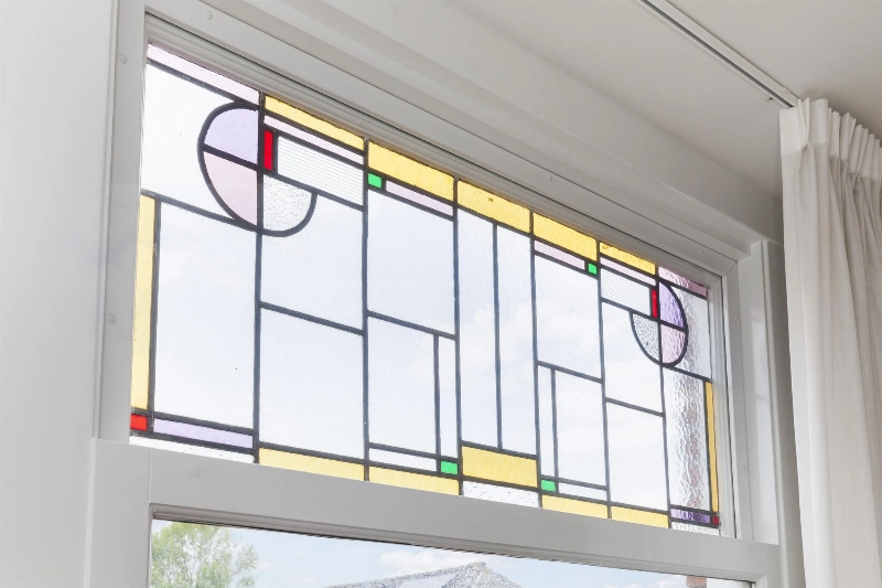 - Grotendeels voorzien van dubbel glas in houten en kunststof kozijnen m.u.v. het glas in lood