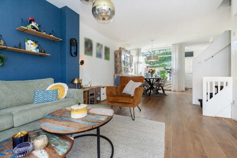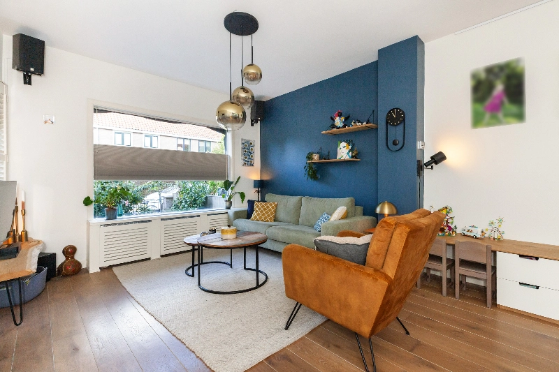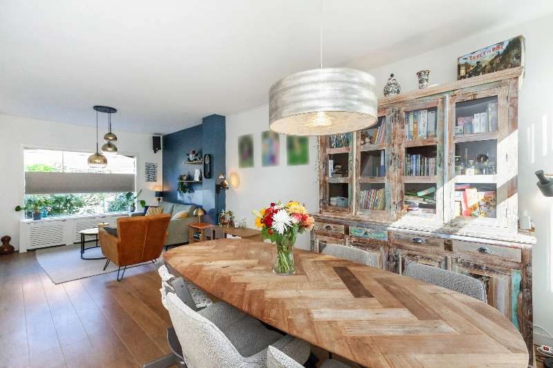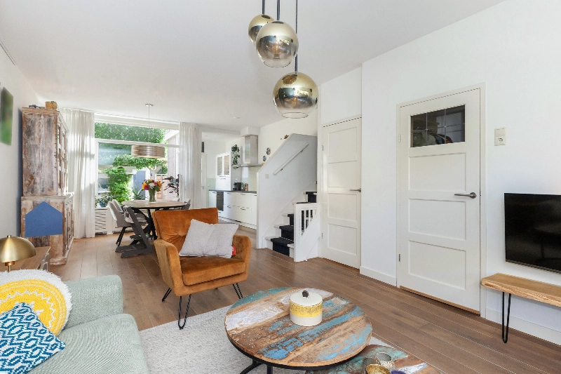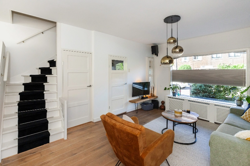 De woning heeft een uitnodigende voortuin met groen en nette bestrating. Binnenkomst via de ruime hal, waarna u wordt verwelkomd in de sfeervolle woonkamer. De prachtige eiken vloer, strakke gestucte wanden en grote raampartijen zorgen voor een warme en eigentijdse uitstraling.