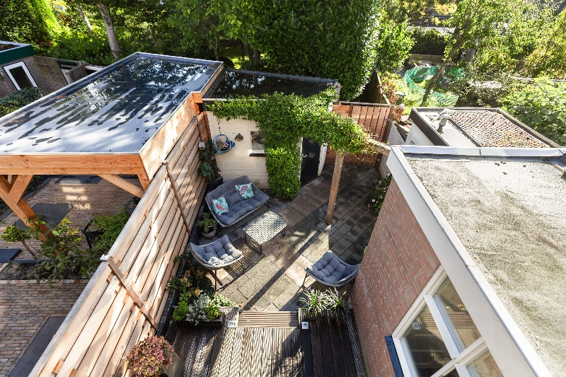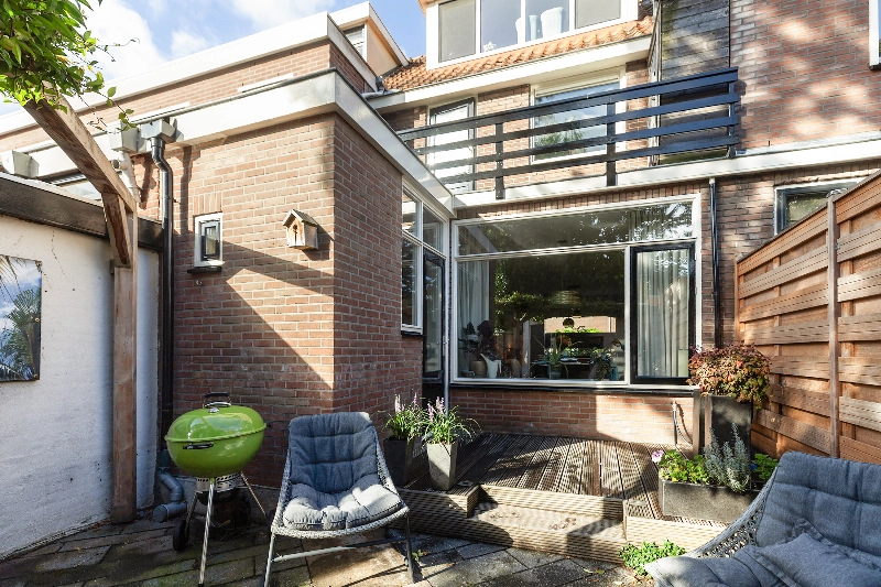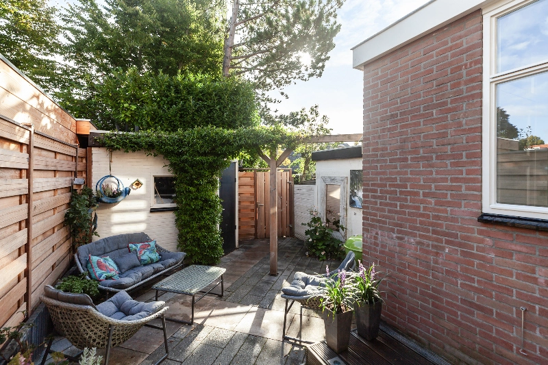 Vanuit de keuken stapt u zo de gezellige achtertuin in. Hier geniet u van een verhoogde vlonder aan de woning, fraaie bestrating, een houten pergola voor extra sfeer en een stenen berging. In 2025 is er een nieuwe schutting geplaatst.