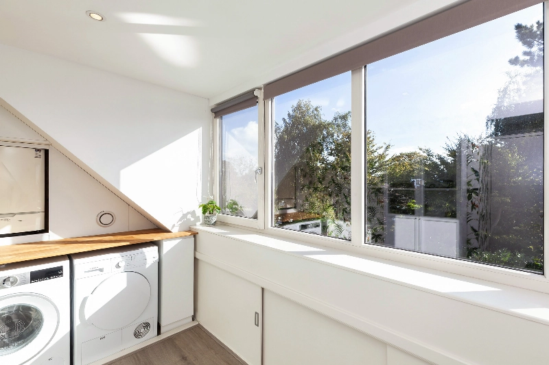 Op zolder zorgen twee grote dakkapellen voor een prachtige verdieping met een slaapkamer en een slaapkamer/wasruimte.