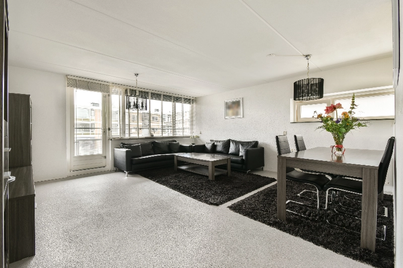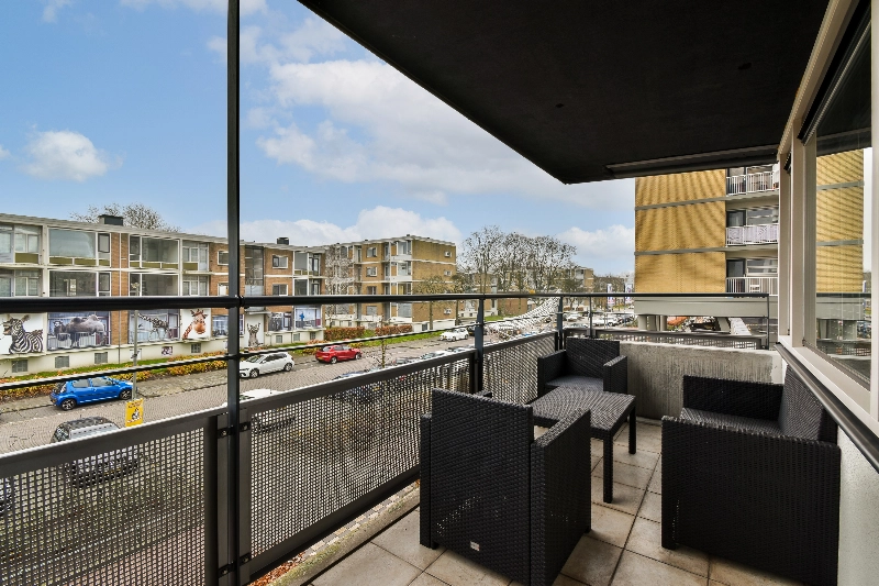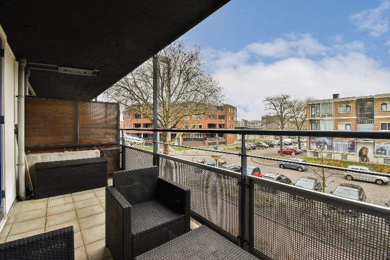 We lopen door naar de woonkamer. Deze is ruim en heeft veel lichtinval mede door het zijraam. Via de woonkamer heb je toegang tot het zonnige balkon. Hier is genoeg plaats voor een gezellige opstelling dus genieten maar!