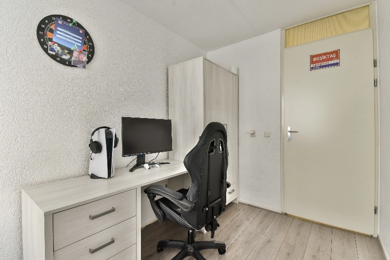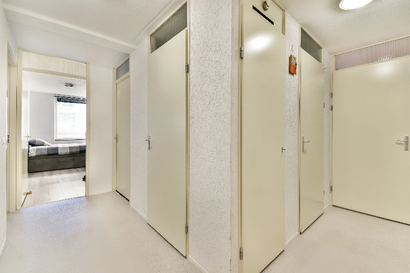 In de gang vind je de toiletruimte, de meterkast met glasvezelaansluiting en een vaste kast met opstelplaats voor de cv-combiketel.