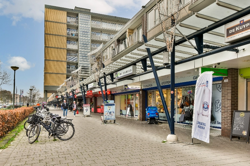 Voor de deur is het vrij parkeren en op loopafstand vind je de gezellige winkelstraat "De Nolenslaan", de Schiedamse molens en diverse (basis)scholen. Tevens zijn diverse uitvalswegen en openbaar vervoer (metro, tram en bus) in de directe nabijheid en het centrum van Schiedam en Rotterdam zijn goed bereikbaar. Nog even een boodschap halen uit je werk? Dat kan snel bij de onder het complex gelegen supermarkt.
