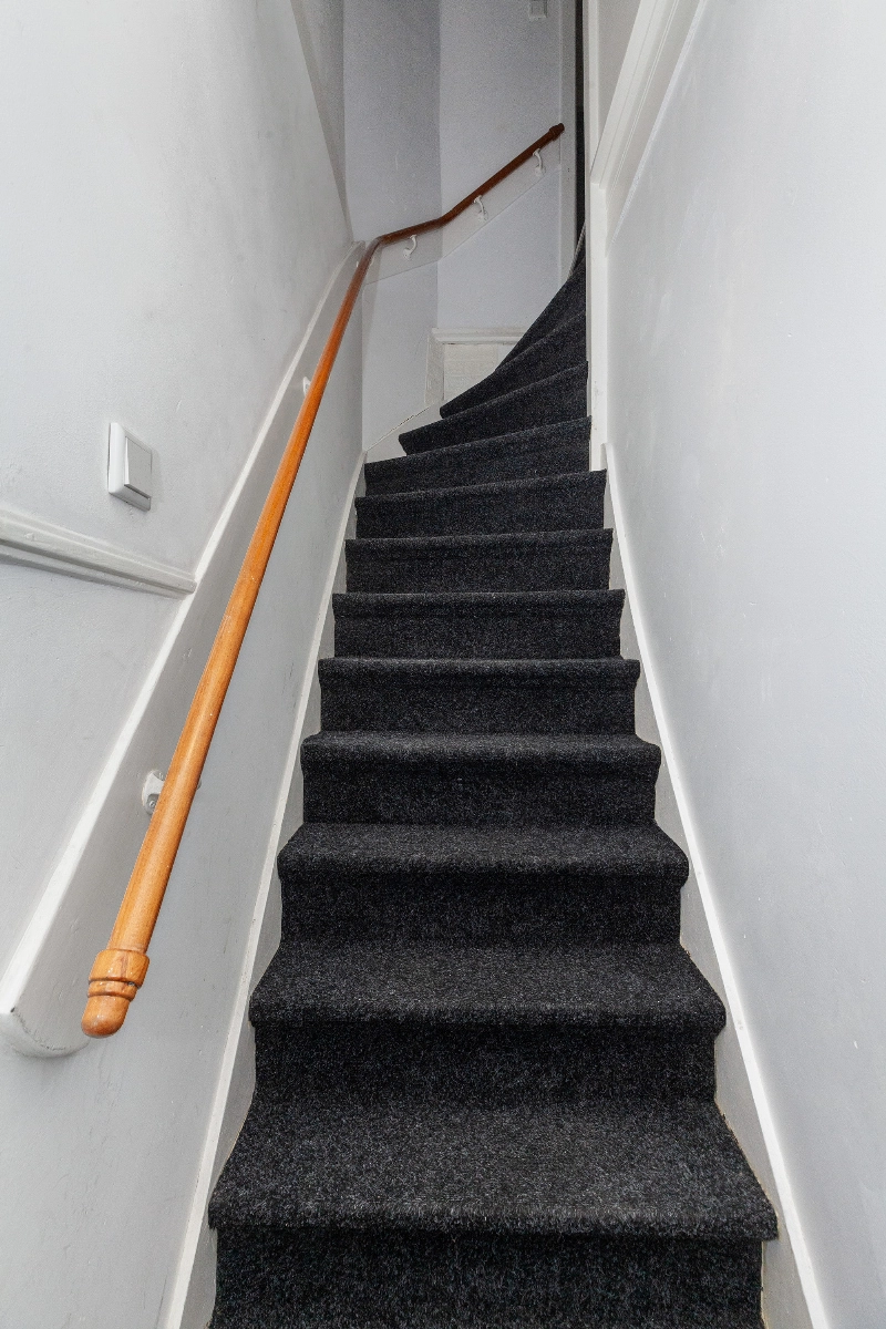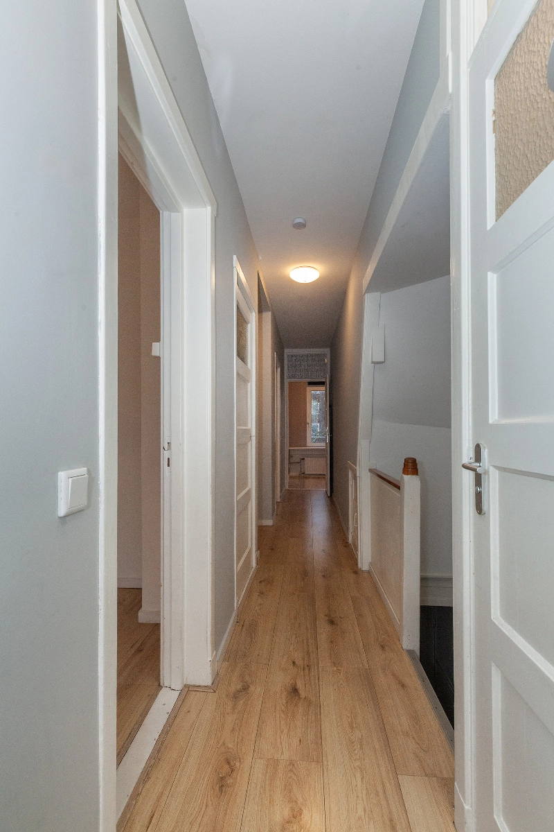 Overloop van de woning is voorzien van meterkast met 5 groepen en 2 aardlekschakelaars en geeft toegang tot alle vertrekken van de woning.