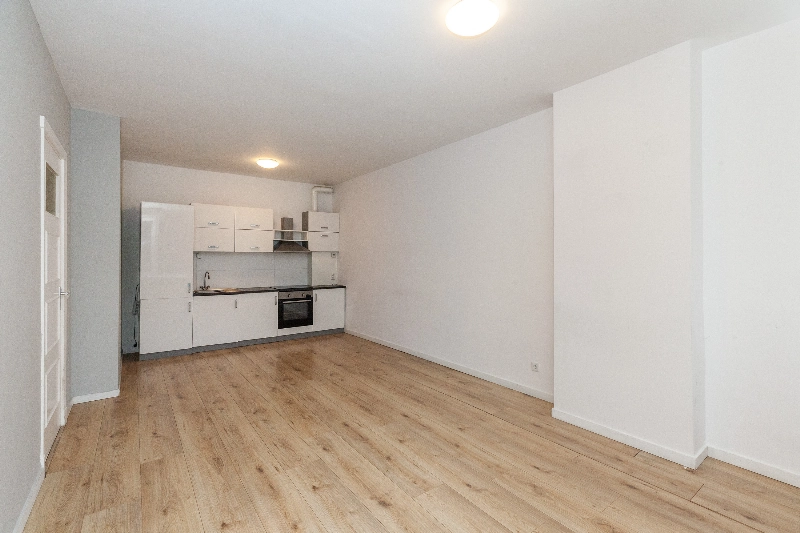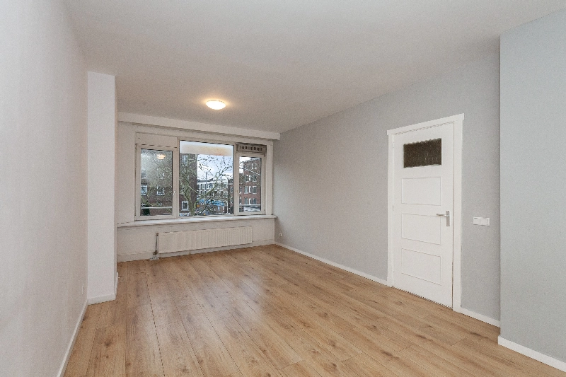 Woonkamer is voorzien van strakke wand- en plafondafwerking en een keurige laminaatvloer.