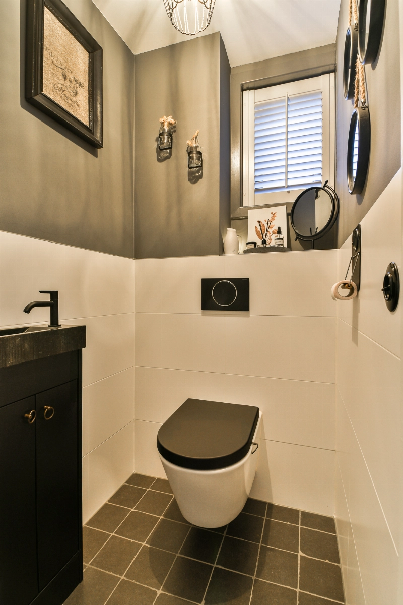 Via de zij-entree bereik je de woning en stap je in een ontvangsthal met antracietkleur vloertegels, garderobe en een mooie pui met dubbele deur naar de woonkamer. In de hal vind je tevens een deur naar de kelder (met daglicht) en de gedeeltelijk betegelde toiletruimte voorzien van een Belgisch hardstenen fonteintje, shutter en een zwevend closet.