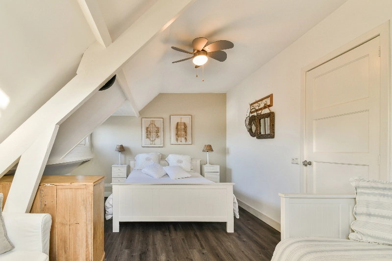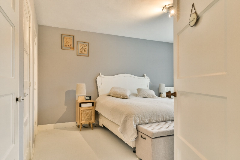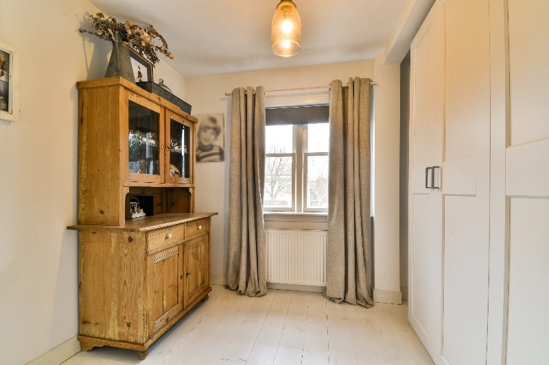 Slaapkamer II is ook gelegen aan de voorzijde en is voorzien van houten vloerdelen en 3 vaste kasten.