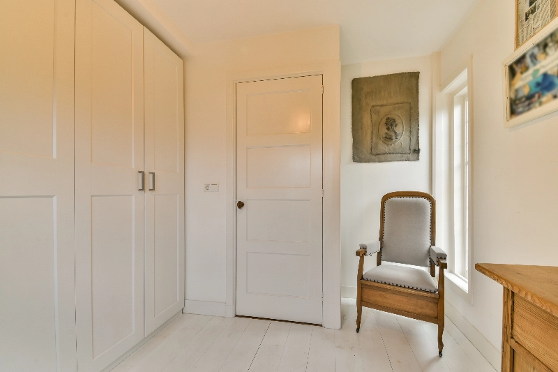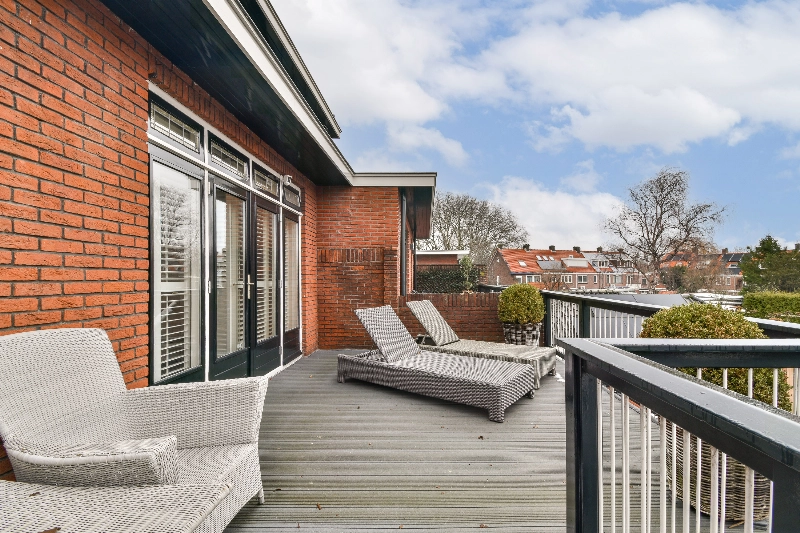 Slaapkamer III is gelegen aan de achterzijde en is uitgevoerd met een witte houtlook laminaatvloer en ook hier weer 3 vaste kasten. Via de dubbele deur kom je op het grote dakterras. Vanaf hier heb je vrij zicht over de tuin.