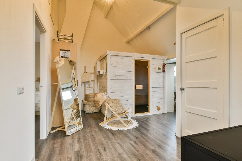 De 2e verdieping is een prachtige open zolderruimte met dakramen en een hoge nok. Deze ruimte is thans voorzien van een grote sauna en een trap naar een bergvliering boven slaapkamer IV. Er is een aparte 4e slaapkamer. Deze ruime kamer is voorzien van een dakraam, een kunststof dakkapel, laminaatvloer, gestucte wanden en de spanten in zicht maken het geheel af.