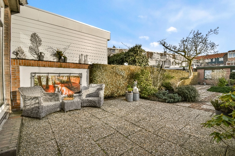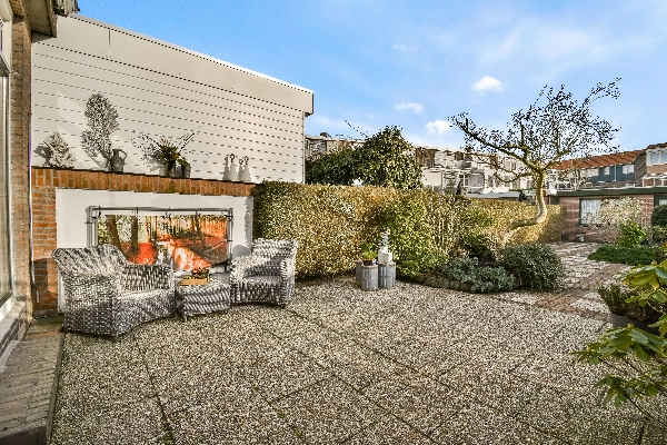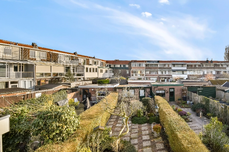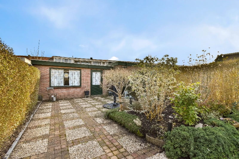 De schuifpui of loopdeur aan de achterzijde geven toegang tot de tuin. Wat een prachtige diepe tuin is dit! Er is een stenen berging met elektra en een achterom aanwezig. De ligging is op het oosten, maar door de diepte van meer dan 18 meter kan je hier de hele dag van de zon genieten!