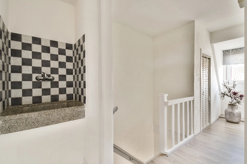 Overloop met een mooie granito spoelbak en een bergkast.