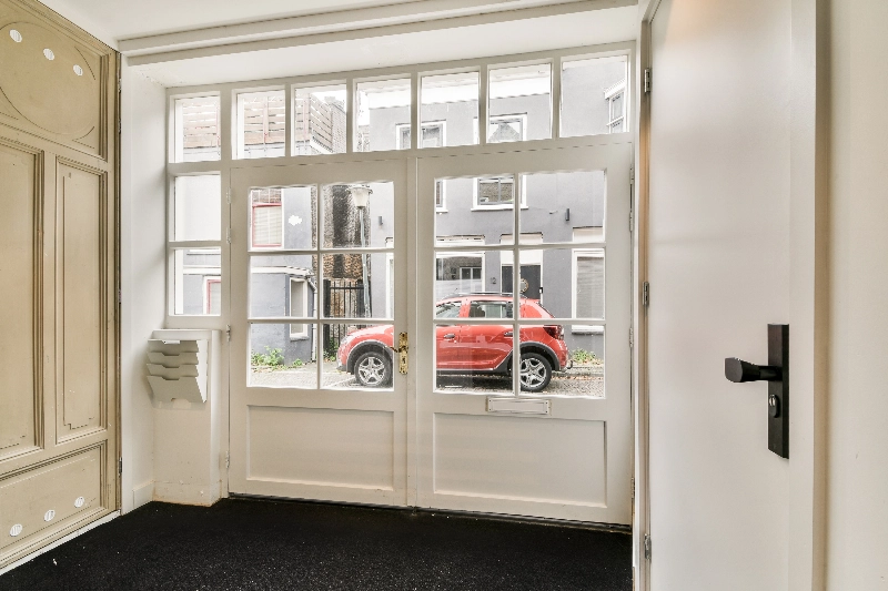 Je betreedt de woning via de charmante deuren met glazen ruiten en komt binnen in de lichte centrale hal. Hier vind je de meterkast en de opstelling van de c.v. installatie (Intergas).