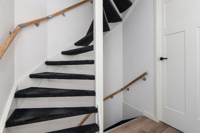 De trap naar de 1e verdieping is bekleed met een moderne vloerbedekking en de verdieping is voorzien van een mooie laminaatvloer.