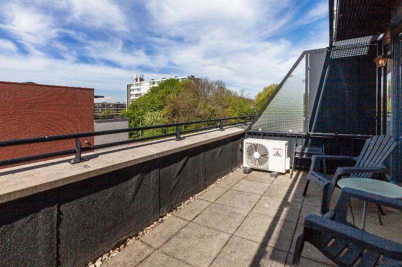 Via deze kamer kom je op het dakterras van 13m². Hier kan je lekker van de zon genieten of je was laten drogen. Wat je ook doet, het is fijn dat deze bij de woning hoort!
