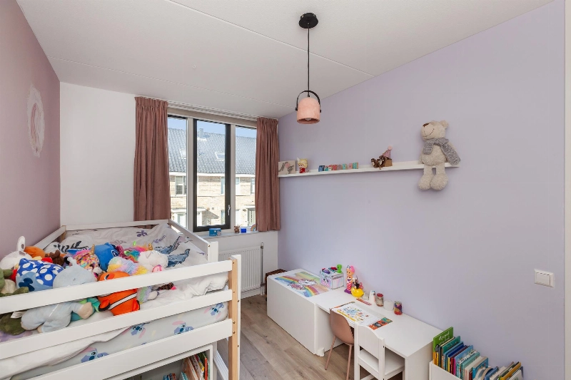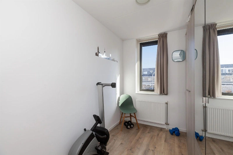 Slaapkamer 4 ligt aan de voorzijde van de woning en heeft een mooie grote dakkapel met drie elektrische bedienbare rolluiken. Daarnaast is er een aparte kast met de c.v. combiketel en de aansluitingen voor een wasmachine en droger.