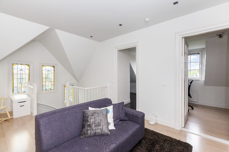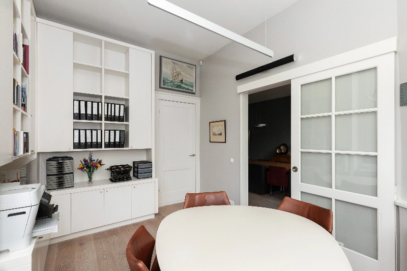 Binnen zult u worden verrast door de ruimte en vooral de hoogte van de ruimtes. Door de doordachte indeling, die door Jan des Bouvrie zelf nog is uitgetekend, sluiten alle ruimtes op de begane grond naadloos op elkaar aan. Geniet van het licht en de details van deze complete woning met werkkamer, heerlijke salon en een prachtige woonkeuken die aansluit op de aanbouw met o.a. was- en hobbyruimte. Op de 1e verdieping telt u drie slaapkamers en een ruime badkamer. De 2e verdieping telt eveneens drie slaapkamers en een 2e badkamer. De 3e verdieping heeft een extra kamer met douche en een sauna die ontspanning geeft na een drukke werkdag.