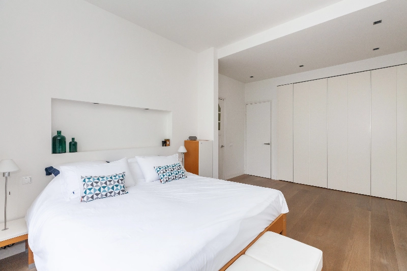 Slaapkamer III; gelegen aan de achterzijde en is voorzien van plavuizen en ook hier weer een dubbele deur naar het grote terras aan de achterzijde.
