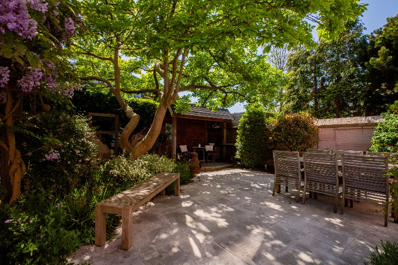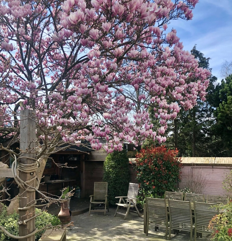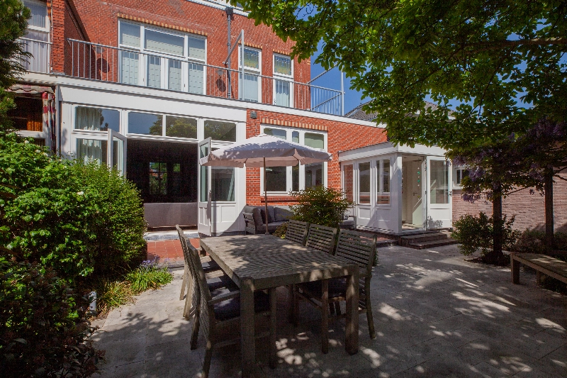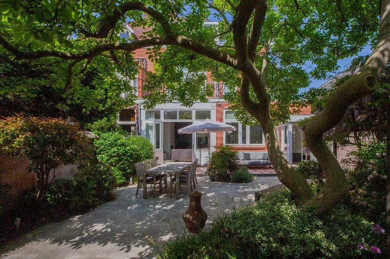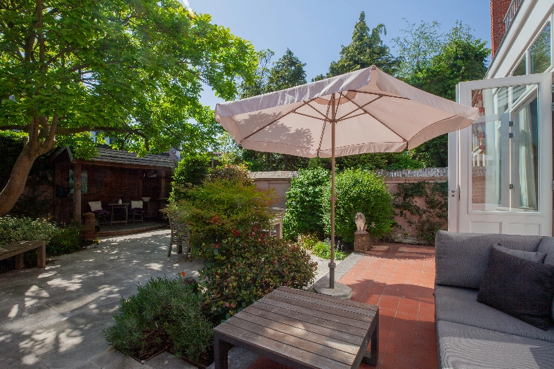 De achtertuin is een verborgen pareltje. Deze prachtige omsloten stadstuin is voorzien van een stenen muur en is ontworpen door een tuinarchitect. Deze tuin is gelegen op het zuiden en voorzien van een onderheid terras, wit marmer, diverse beplanting en achterin vindt u een overkapping en een trampoline. De grote magnolia staat centraal in deze tuin en brengt sfeer. Deze tuin staat garant voor veel gezelligheid en privacy!
