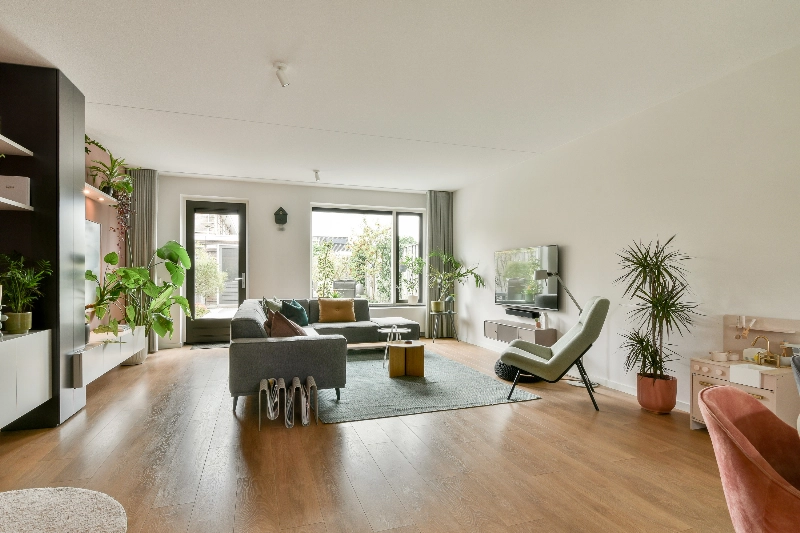 - De wanden zijn voorzien van stucwerk en alle vloeren zijn voorzien van een moderne laminaatvloer;