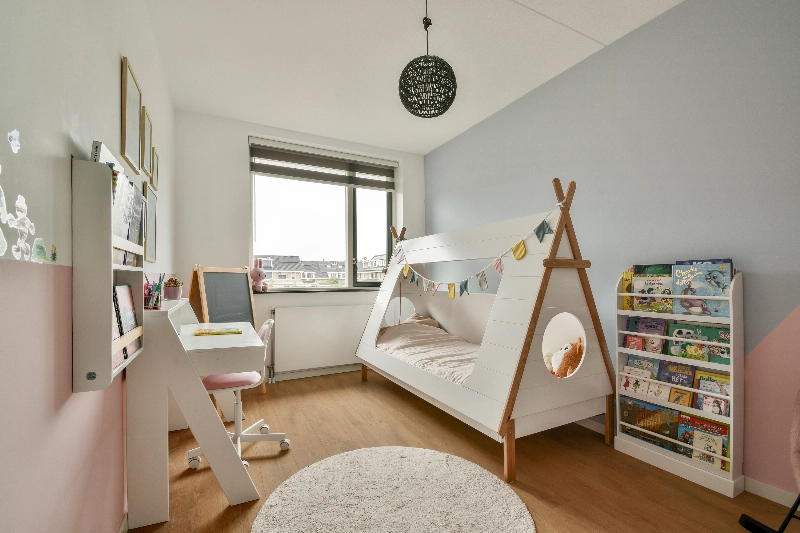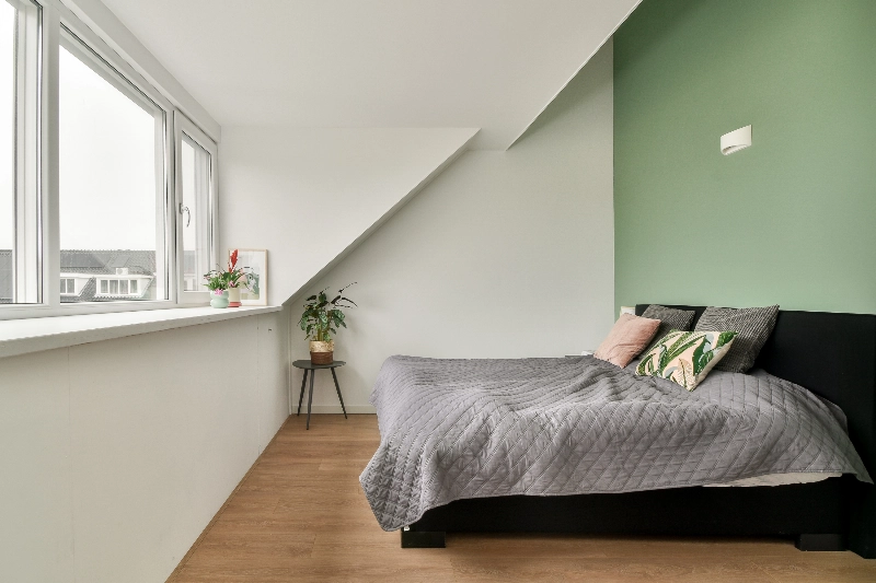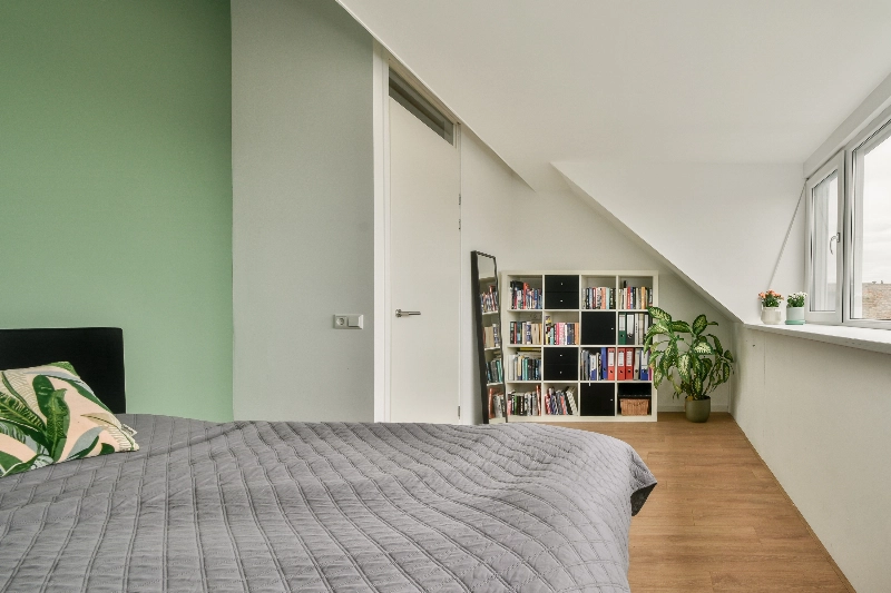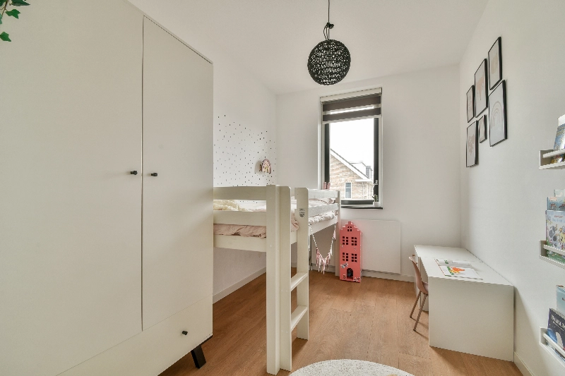 De 5e slaapkamer bevindt zich aan de voorzijde van de woning. Door de doorlopende erker en het dakraam is ook hier weer een mooie kamer ontstaan. Ook hier is weer extra kastruimte gecreëerd.
