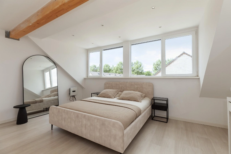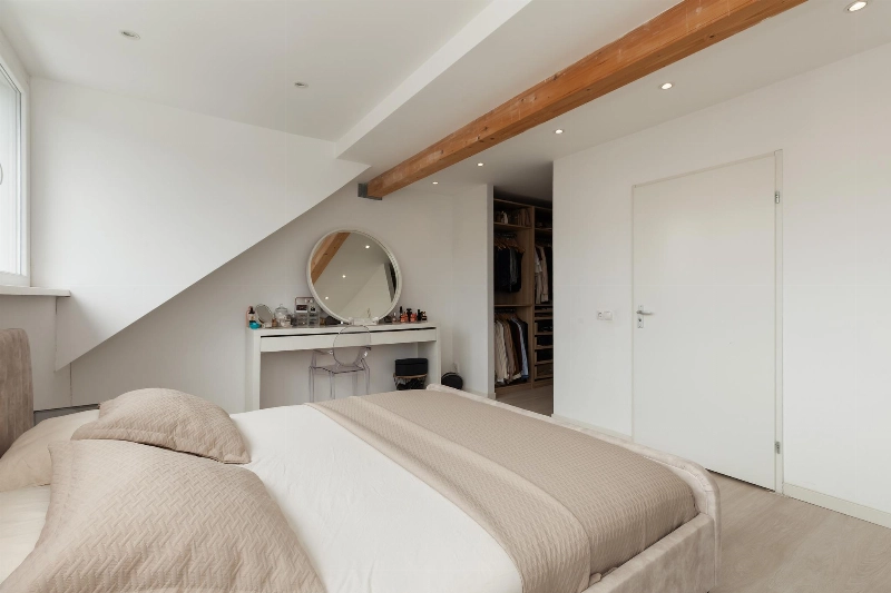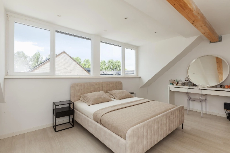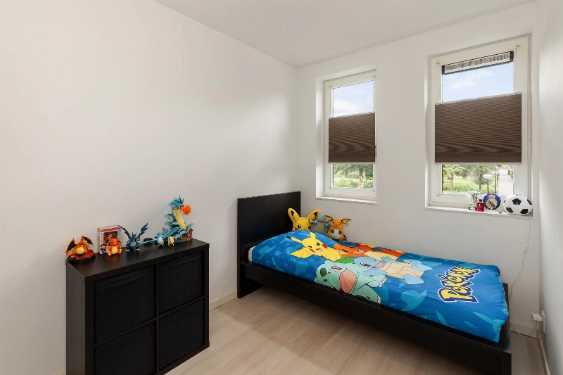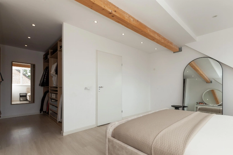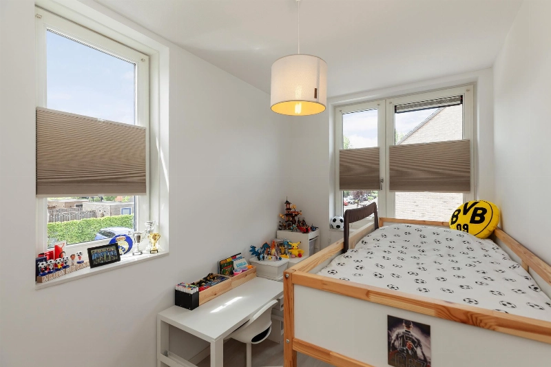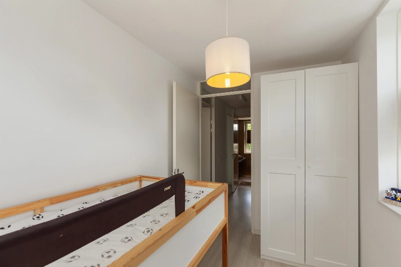 Via de vaste trap bereikt u de tweede verdieping. Hier is een ruime vierde slaapkamer met een grote dakkapel met een ingebouwd rolluik, welke zorgt voor veel lichtinval. Daarnaast heeft deze slaapkamer een ruime, luxe inloopkast voor extra opbergruimte.