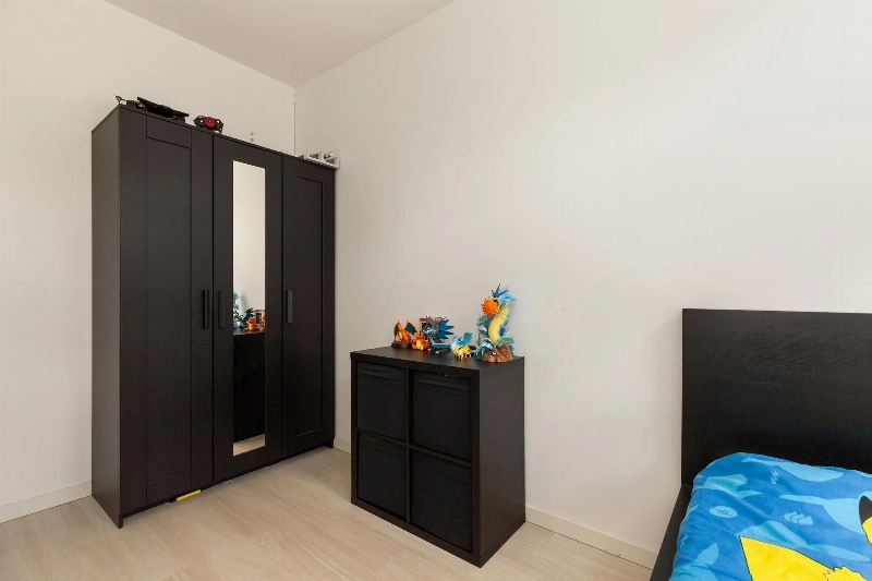 Slaapkamer 2 ligt eveneens aan de achterzijde en heeft een afmeting van ca. 3.75 x 2.20m.