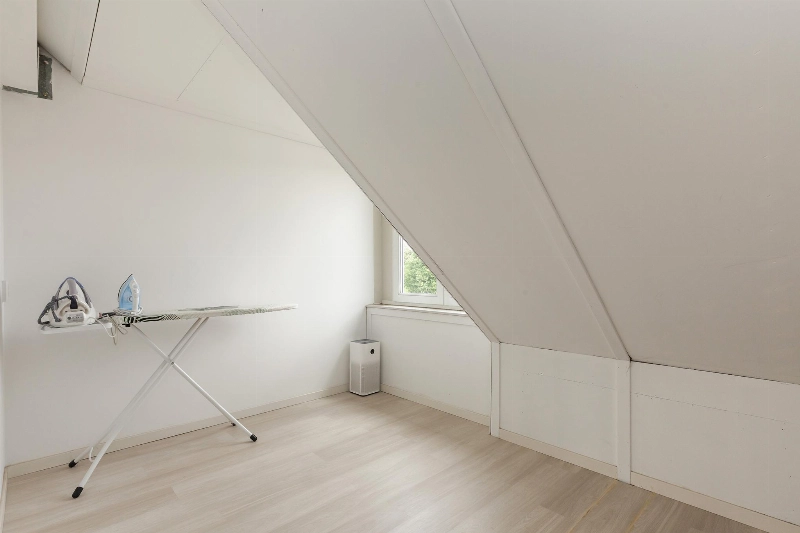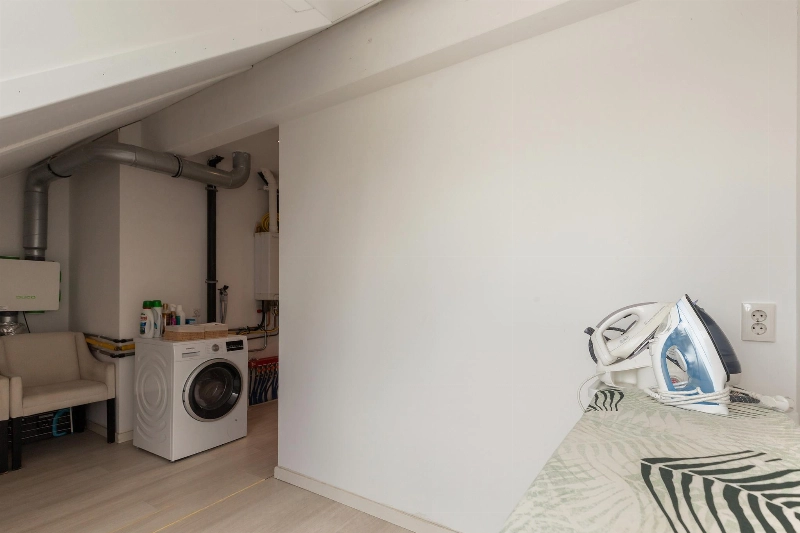 De naastgelegen wasruimte is eveneens voorzien van een dakkapel en biedt plek voor de aansluitingen voor de wasmachine en de cv-combiketel.